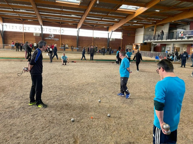 Pendant que certains dégustaient la galette, une autre partie de nos adhérents participaient au Championnat Départemental Loire de Para-Pétanque Adaptée à Andrézieux. Délocalisation obligatoire, afin de participer à une compétition, car il n'y a pas de championnat dans le Rhône.